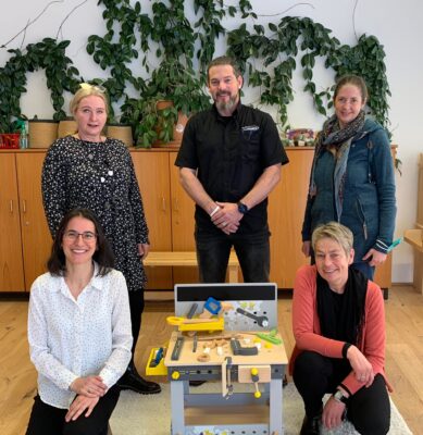 Damit konnte eine neue Werkbank aus Naturmaterialien für die Eltern-Kind-Gruppen angeschafft werden. Die Kinder und die Gruppenleiterinnen freuen sich sehr und womöglich werden da neue Talente für den Meisterbetrieb Allworxx im KFZ-Bereich entdeckt!