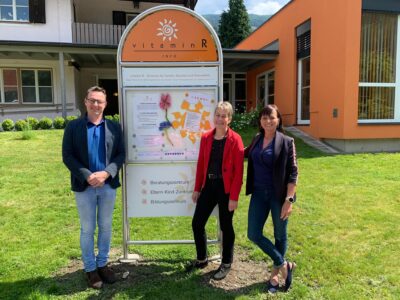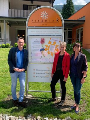 In der Neuen Heimat 24 arbeitet seit vielen Jahren der Verein vitamin R – ein Zentrum für Familie, Soziales und Gesundheit. Um die vielfältigen Angebote im Beratungs-, Bildungs- und Eltern-Kind-Zentrum auch von außen sichtbarer zu machen, wurde eine Infotafel im Stil der Wegweiser in Radenthein aufgestellt. Ausgehängt sind die Basisangebote, die Öffnungszeiten und die Kontaktmöglichkeiten ebenso wie aktuelle News von vitamin R.