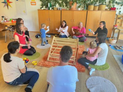 Die Kärntner Landesregierung, Abt 4. – Soziales, fördert die Eltern-Kind-Gruppen bei vitamin R im Rahmen der Kinder- und Jugendhilfe zur Förderung von Familien. Auf Einladung von vitamin R konnte Frau Landesrätin Mag.a Sara Schaar in Begleitung von Vanessa Pichler, Fachreferentin für Kinder- und Jugendhilfe, einen Eindruck vom Ablauf einer Eltern-Kind-Gruppe gewinnen. Danach konnte im Beisein des Radentheiner Bürgermeisters, Michael Maier, Vize-Bürgermeisterin Melanie Golob und der Vorsitzenden des Familien- und Sozialausschusses, Ingeborg Fritzer, die große Nachfrage nach den Eltern-Kind-Gruppen hier in der Nockregion als Informationsquelle für Eltern, als Treffpunkt für den Austausch zu Alltagsthemen mit Kindern und als Netzwerk für Familien vermittelt werden. Ein Ausbau des Angebotes wäre wünschenswert, da die Gruppen übervoll sind und um dem Bedarf gerecht werden zu können, benötigt der Verein eine höhere Förderung zur Deckung der Personalressourcen. Mit diesem Anliegen seitens vitamin R an Landesrätin Sara Schaar als politisch Verantwortliche bleiben wir in Verbindung.