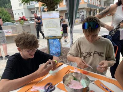 „Weil du bist!“ lautete das Motto der vitamin R – Station beim 1. Radentheiner Familienfest. Mit einer Bastelstation, Luftballonen und einem bunten Tisch mit Allerlei konnten Familien mit ihren Kindern Halt machen. Wer den Parcour am Gehsteig durchlief, durchhüpfte und durchkrabbelte, erhielt einen begehrten Sticker für den Sticker-Pass. Ein schönes, buntes und professionell organisiertes Fest von der Radentheiner Wirtschaft unter Mitwirkung von 18 Vereinen und reger Beteiligung vieler Familien.